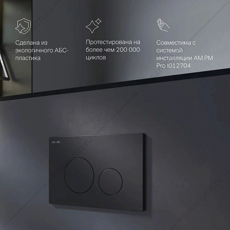 Кнопка смыва бренда AM.PM коллекции Pro L выполнена в стильном дизайне. Пневматическое управление смывом. Размер изделия (Ш/Г/В): 210x10x138 мм. Цвет: Черный матовый. Форма кнопок: круглые. Материал: пластик.
