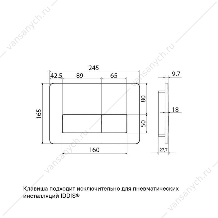 В комплекте только клавиша. Комплект крепежа для ее установки предусмотрен в комплектации к инсталляции IDDIS® Profix Air.