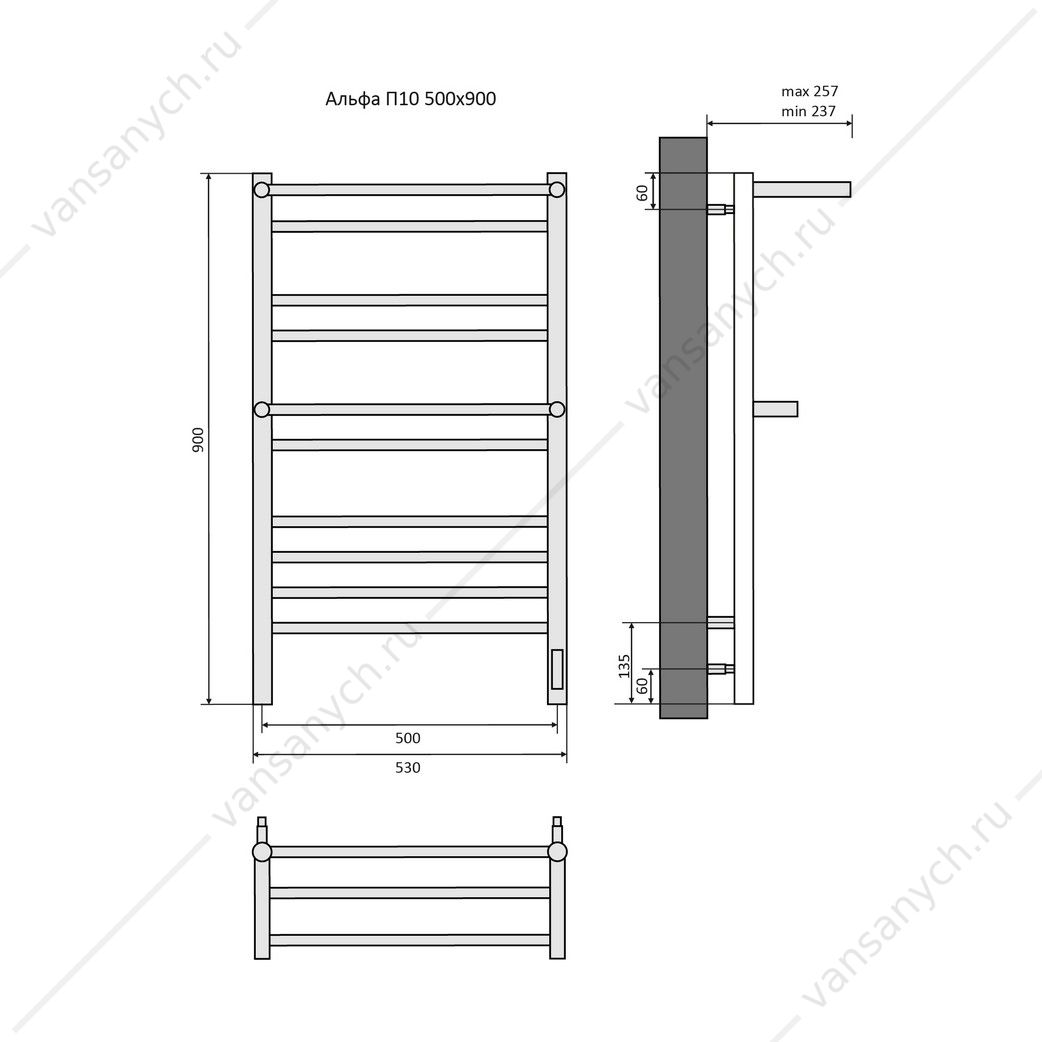 Полотенцесушитель 50х90 Aquatek Альфа П10 электр. quick touch черный муар Aquatek (Россия) купить в Тюмени (Ван Саныч™)Полотенцесушитель 50х90 Aquatek Альфа П10 электр. quick touch черный муар Aquatek (Россия) купить в Тюмени