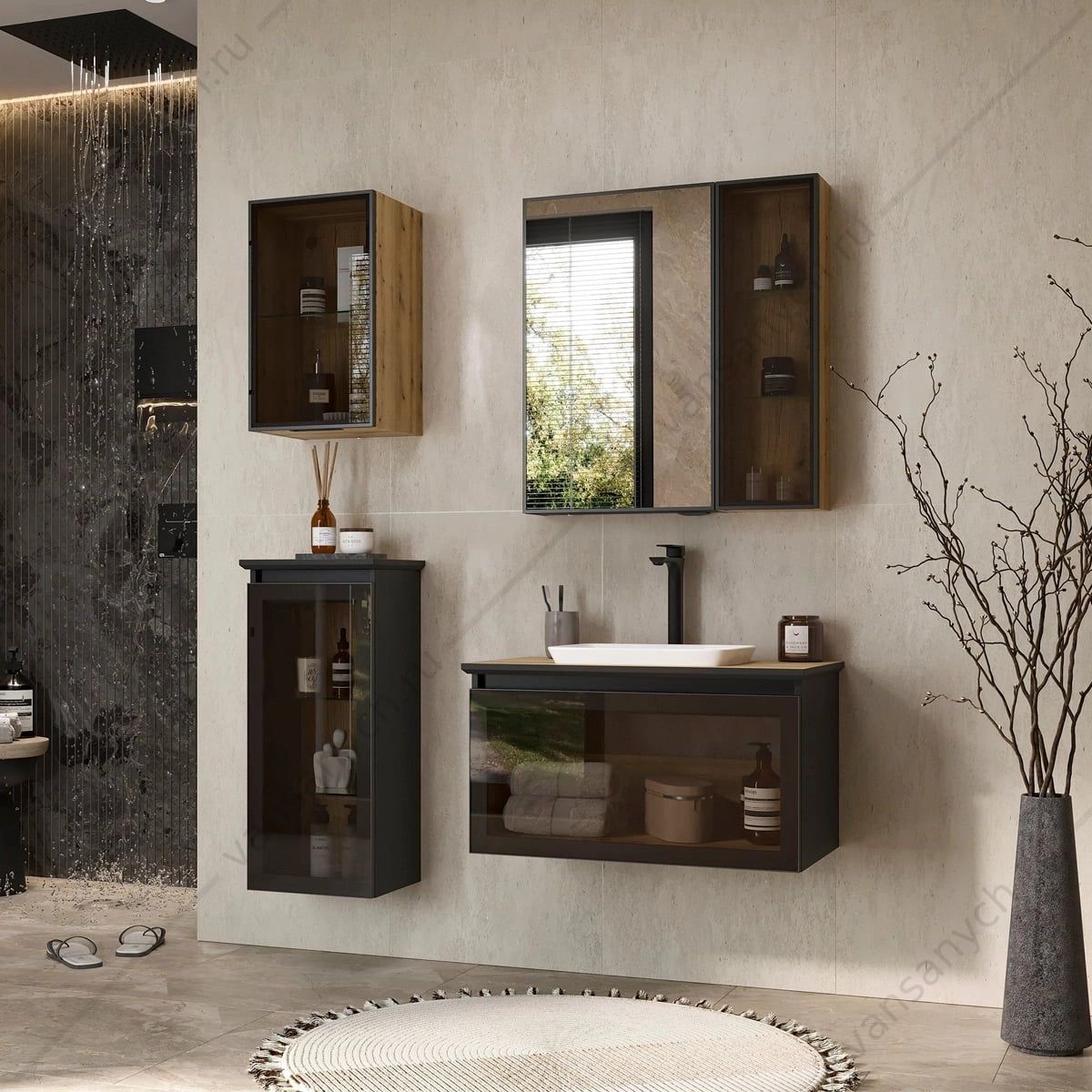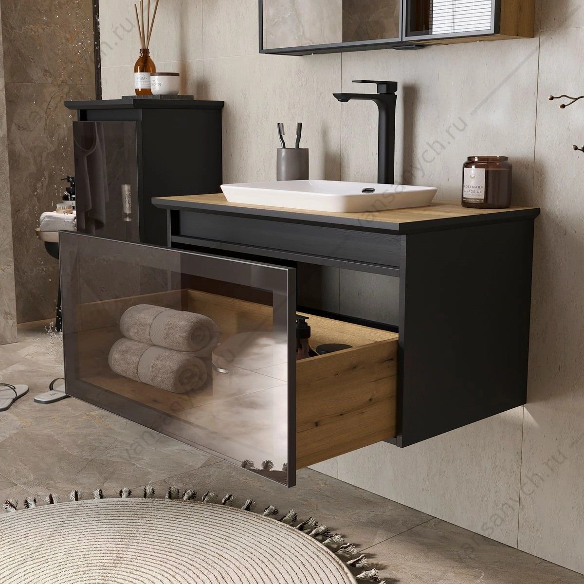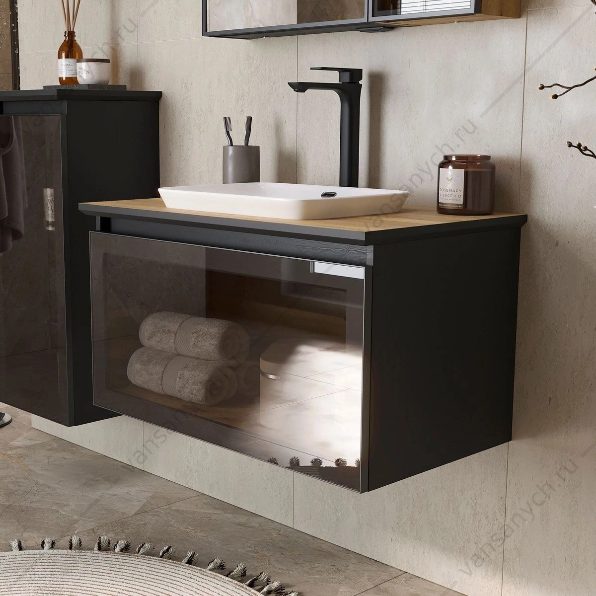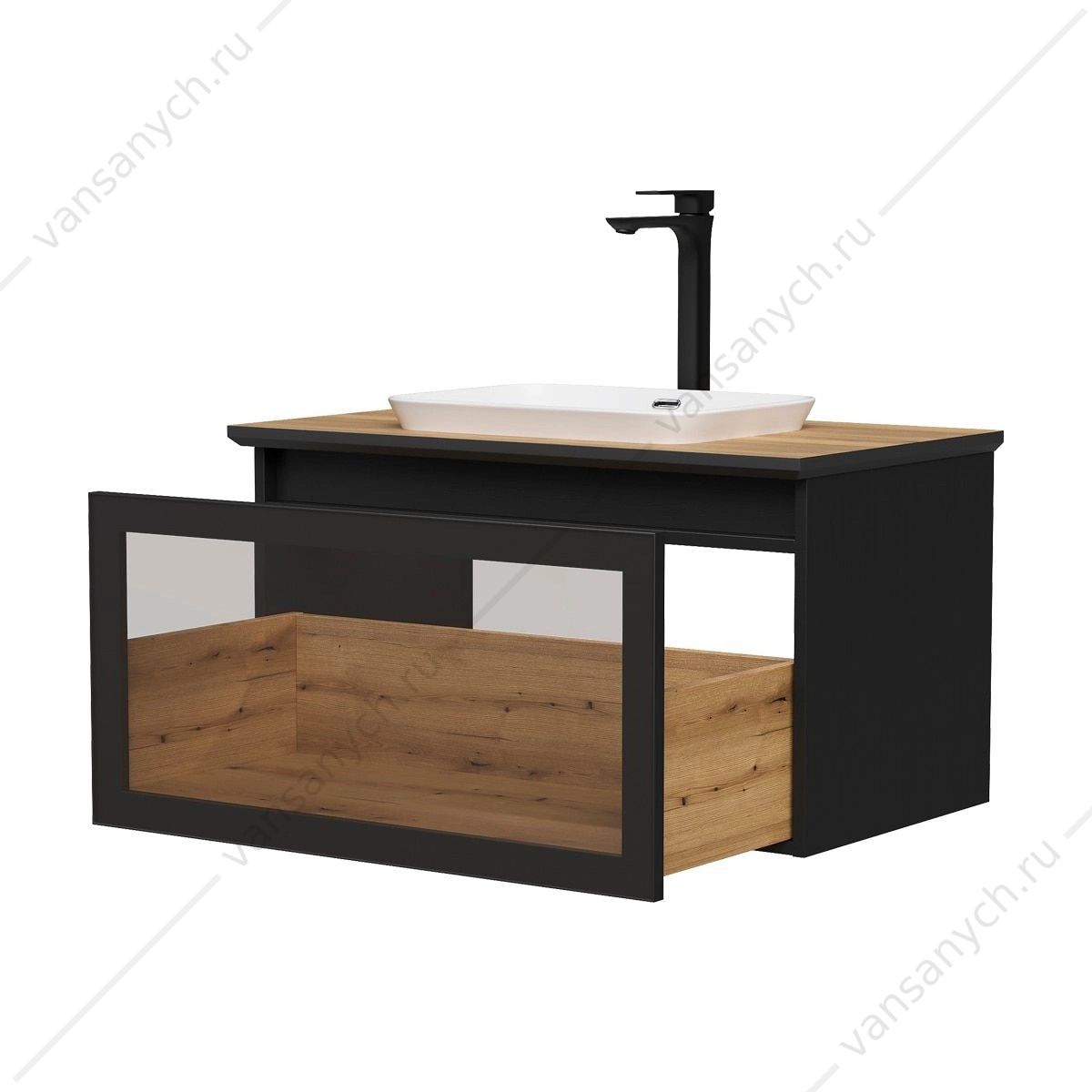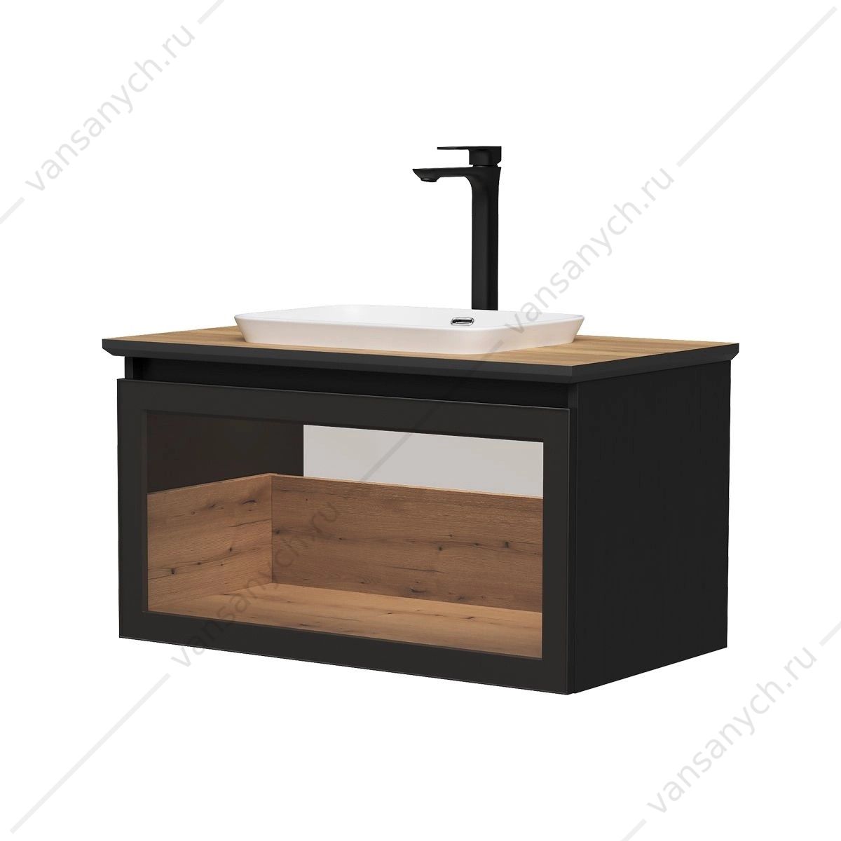 УТ000039047 Тумба 80 с раковиной подвесная со столешницей EQUIL Strong 80.1Y, tpSTRONG80.1Y-35.36, дуб черный/дуб эвок, раковина E408D EQUIL (Россия) купить в Тюмени (Ван Саныч™)УТ000039047 Тумба 80 с раковиной подвесная со столешницей EQUIL Strong 80.1Y, tpSTRONG80.1Y-35.36, дуб черный/дуб эвок, раковина E408D EQUIL (Россия) купить в Тюмени
