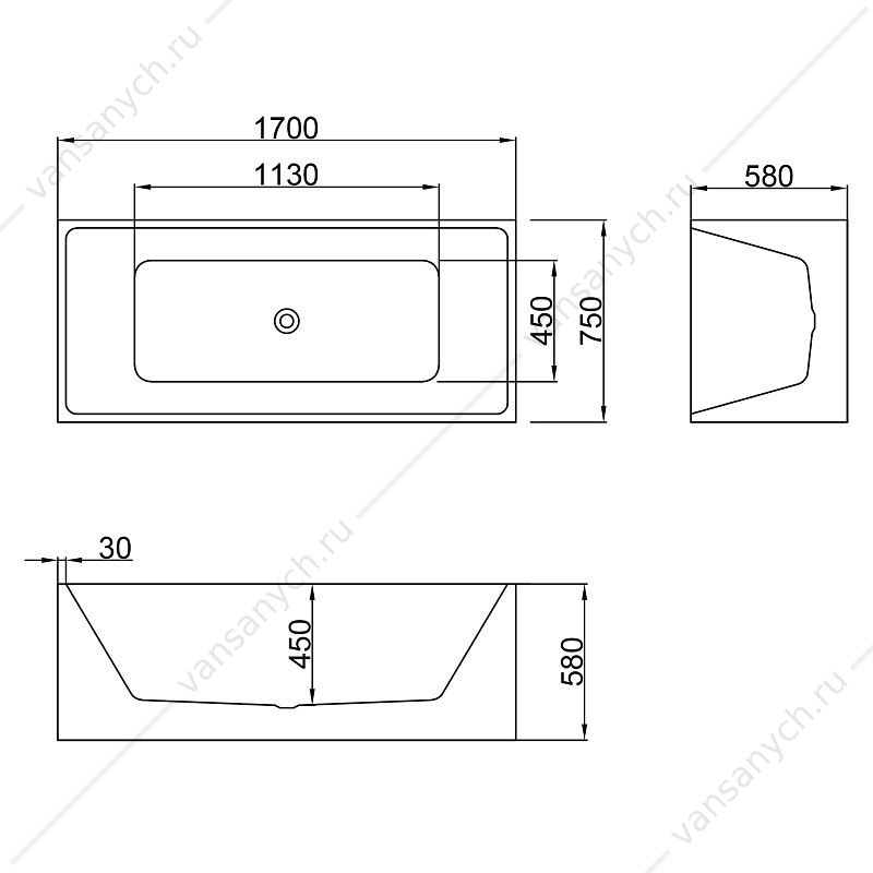 Глубокая и просторная: Габариты 1700x750x580 мм обеспечивают максимальный комфорт во время принятия ванны. Глубина 450 мм позволяет полностью погрузиться в теплую воду, расслабиться и забыть о повседневных заботах.
