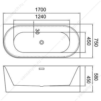 Ванна 170х75 акриловая AZARIO RIO GRANDE пристенная, правая, с сифоном и рамой AZ-6724-2R