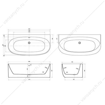 00068279 Ванна 180х88 акриловая Azario Cambridge, пристенная, с сифоном и рамой, CAM18090 Azario (Китай) купить в Тюмени