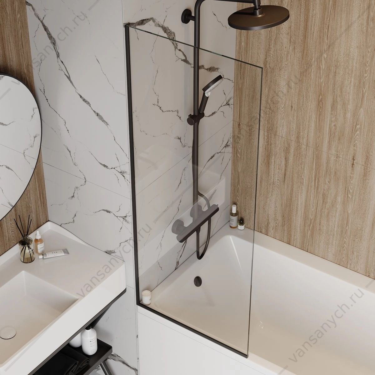 УТ000038978 Шторка 60х140 на ванну Watersense Paula W00211 прозр. стекло, профиль черный матовый Watersense (Италия/Китай) купить в Тюмени