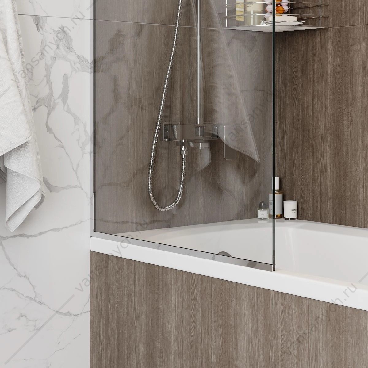 Шторка 70х140 на ванну Watersense Paula W00212 прозр. стекло, профиль хром
