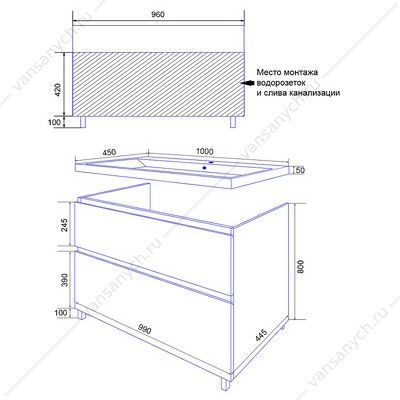 Тумба Azario Viola 100/2Н 1000х450х850 напольная, с раковиной Астория 100, фисташковый CS00097145 AZARIO (Россия/Китай) купить в Тюмени
