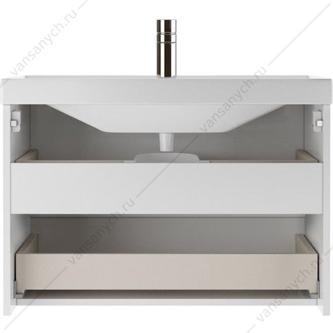 Мебель для ванной включает два функциональных выдвижных ящика. Это позволяет хранить все необходимые вещи в порядке и легко к ним добираться. Тумба подвесная оснащена направляющими скрытого полного выдвижения с доводчиком, что делает использование удобным и надежным на протяжении всего срока службы.