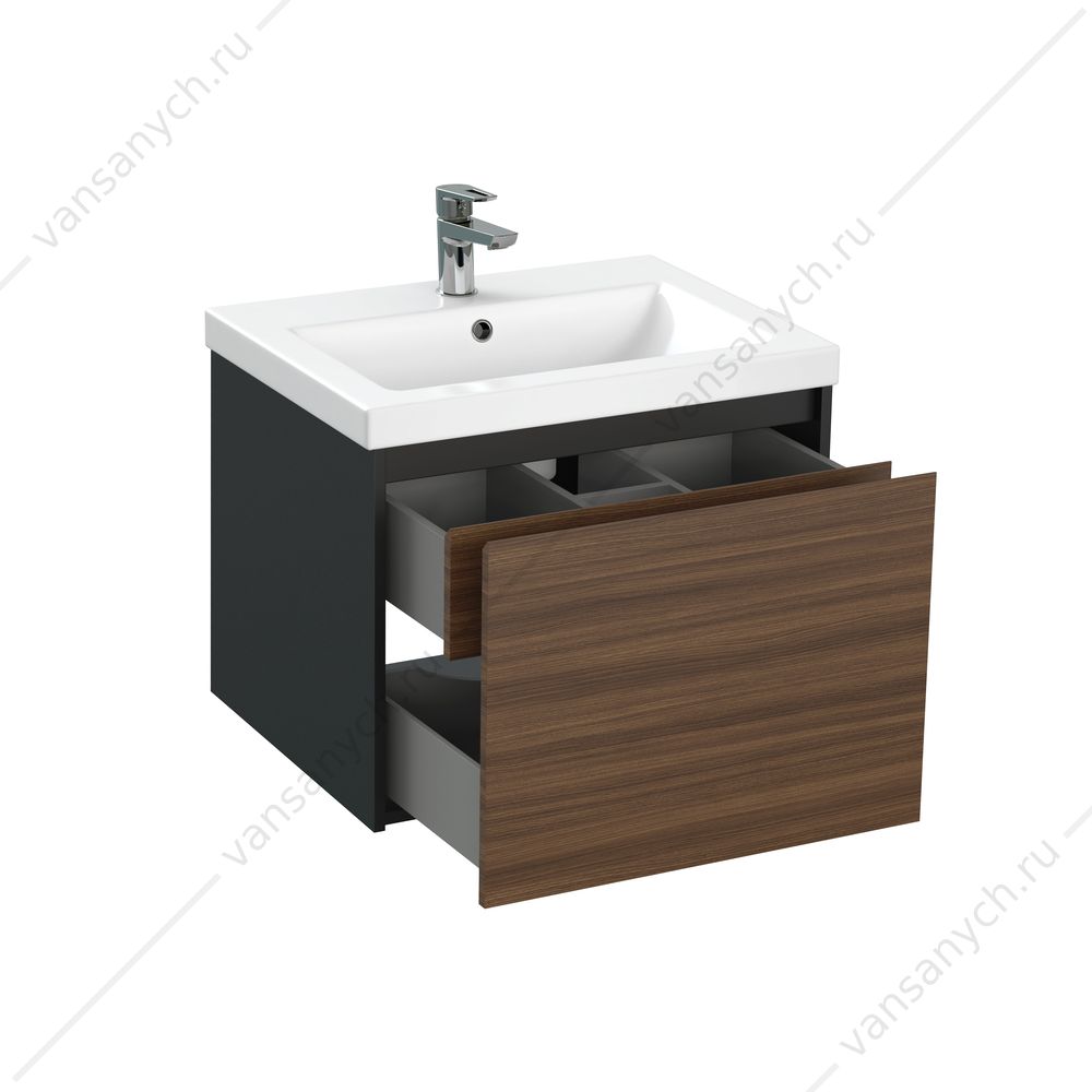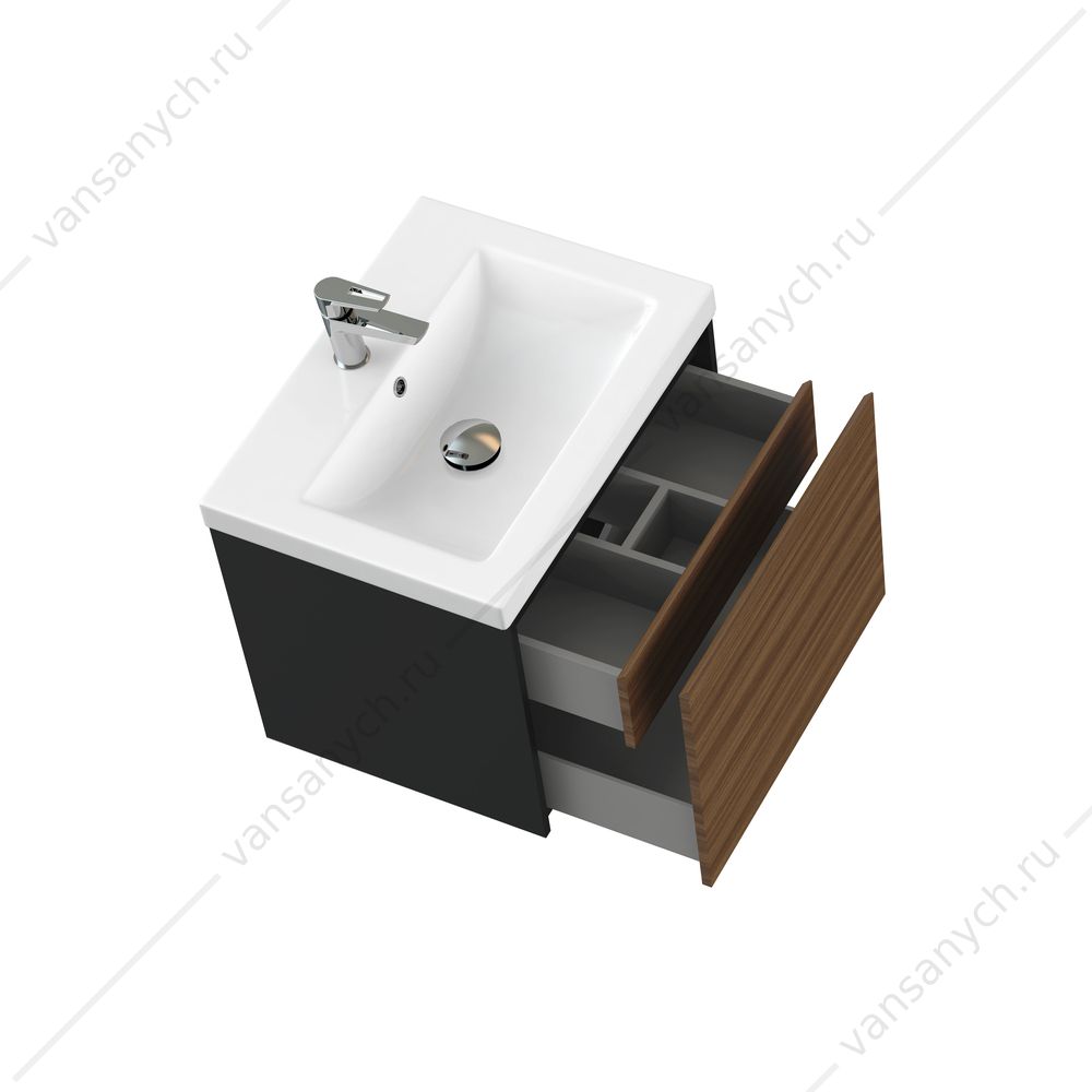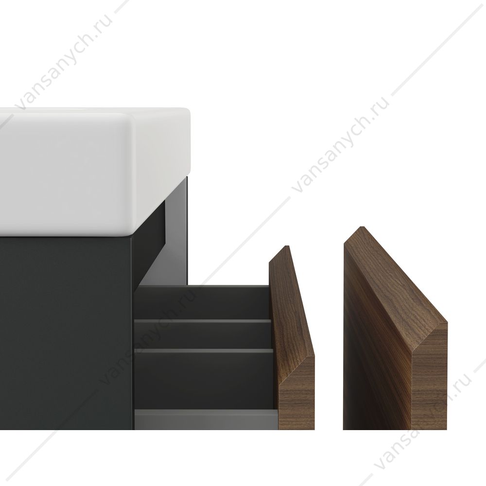 Тумба Grande в цвете «чёрный» и «орех» станет находкой для ценителей натуральных оттенков и материалов. Фасад тумбы из ЛДСП имеет приятный на ощупь рельеф, повторяющий структуру дерева. Текстура под орех позволит комбинировать тумбу с отделкой и декоративными элементами ванной комнаты, что эффектно подчеркнёт дизайнерскую задумку.