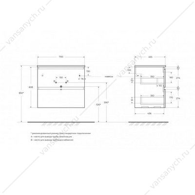 Тумба под раковину 70 BELBAGNO UNO подвесная с 2ящ. Темно-Серый Матовый UNO-700-2C-SO-GSO Belbagno (Италия) купить в Тюмени
