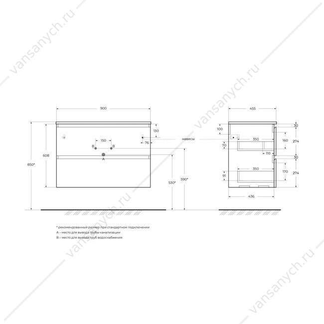 Тумба под раковину 90 BELBAGNO UNO подвесная с 2ящ. Темно-Серый Матовый UNO-900-2C-SO-GSO Belbagno (Италия) купить в Тюмени