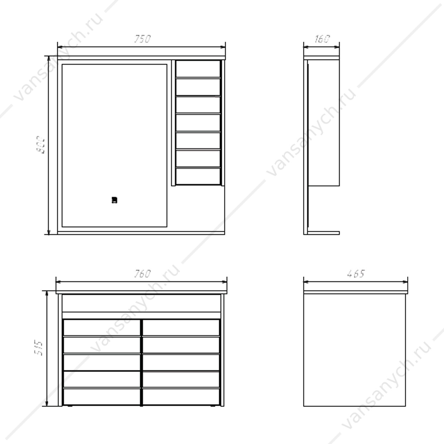 Подвесная тумба-умывальник с двумя распашными створками, оснащенными петлями с системой плавного закрывания. Фасад тумбы из МДФ украшен горизонтальным узором и обтянут в пленку цвета антрацит.