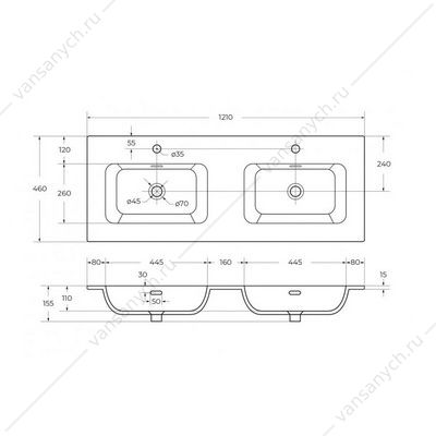 Раковина с двумя чашами мебельная керамическая CEZARES 1210x460x155