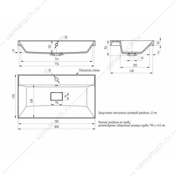 Умывальник мебельный ULGRAN UNIT 800 4610249313746