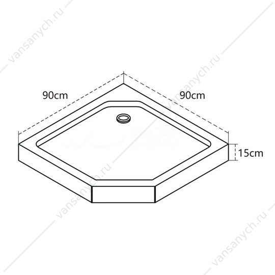 Поддон 90х90х15 OLIVE'S P-90155-WH 5-тиугольный, с сифоном, белый ABS- пластик