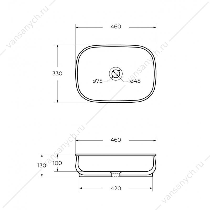 Размеры раковины: 460х330х130 мм