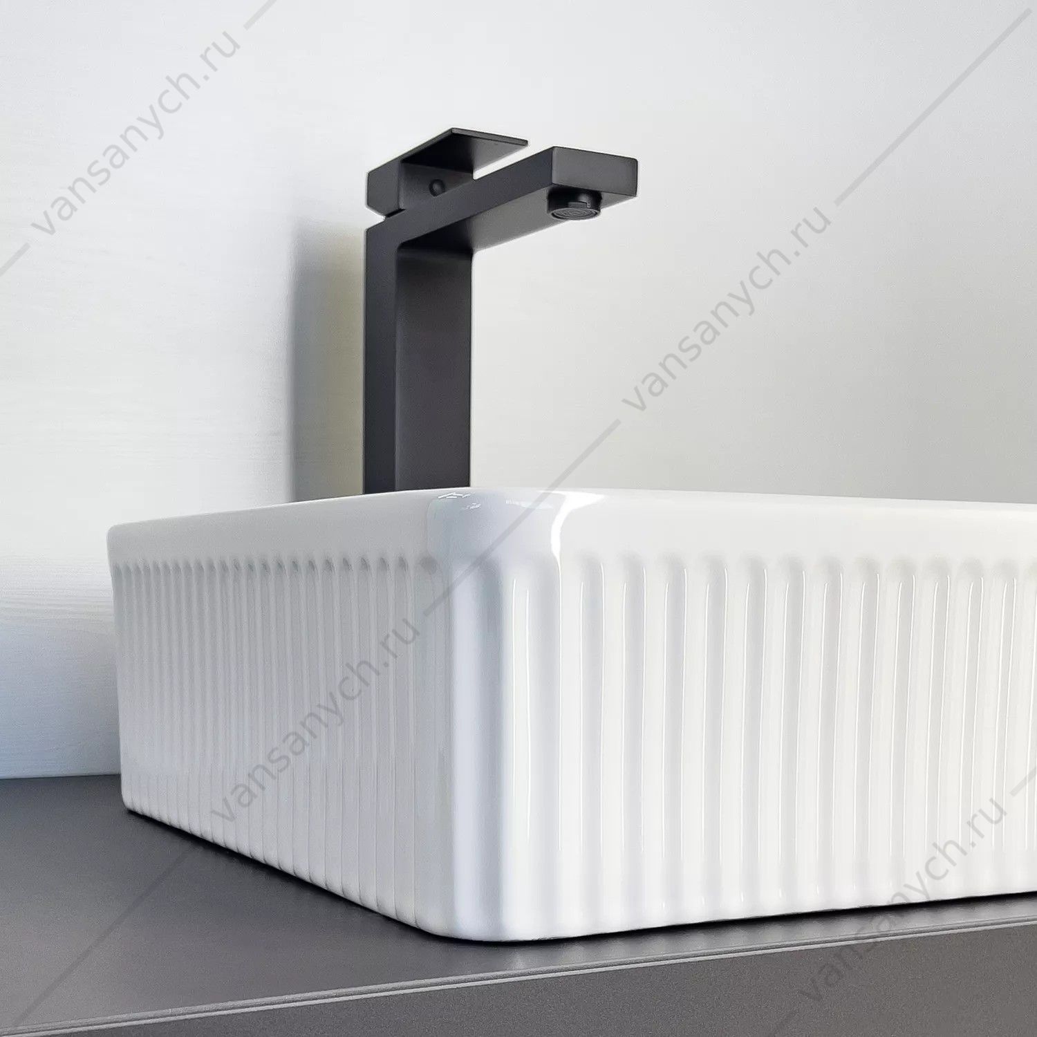 Форма чаши: квадратная, рифленый внешний борт чаши с имитацией волны