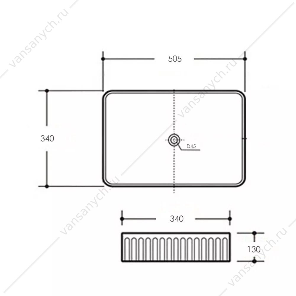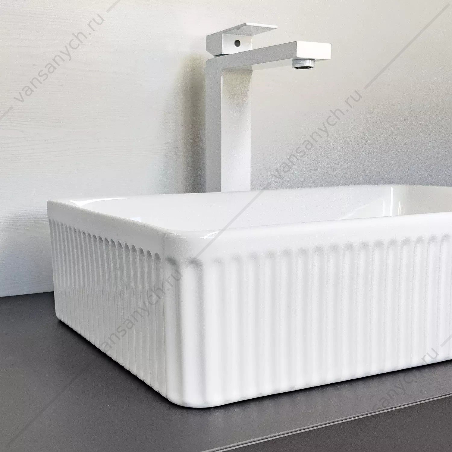 Форма чаши: прямоугольная, рифленый внешний борт чаши с имитацией волны