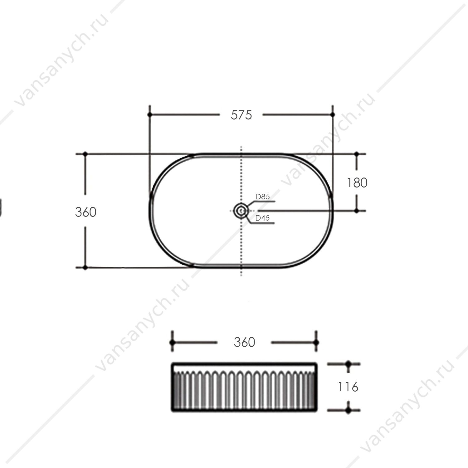 Форма чаши: овальная, внешний борт чаши с имитацией волны