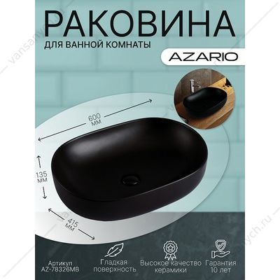 Раковина 60х41,5 накладная Azario цвет чёрный матовый AZ-78326MB AZARIO (Россия/Китай) купить в Тюмени