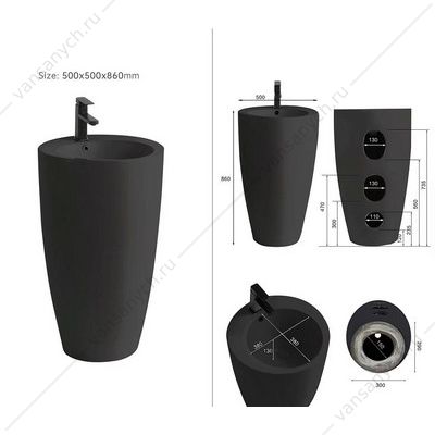 Оптимальные размеры: Габариты 500х500х860 мм делают эту раковину идеальным выбором для ванных комнат различного размера. Высота 860 мм обеспечивает комфортное использование для большинства пользователей, а ширина и глубина чаши достаточны для удобного выполнения гигиенических процедур.