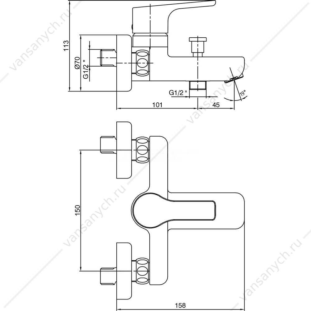 Смеситель для ванны LUNA хром 102102450EX E.C.A. (Турция) купить в Тюмени