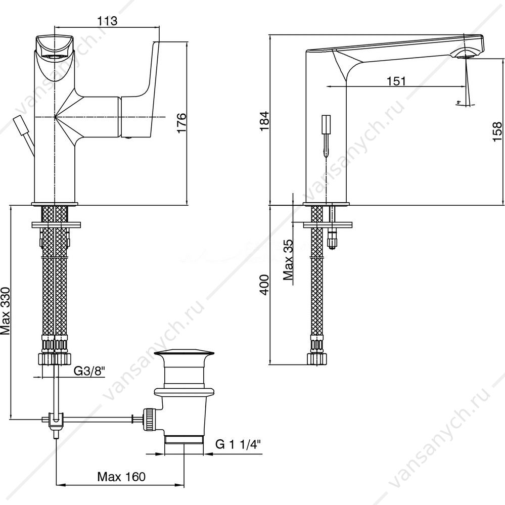 Смеситель для раковины 158 LUNA с дон. клапаном 102108973EX