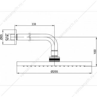 Верхний душ с держателем диаметр 255 мм MYRA, матовый черный 102145034C1EX E.C.A. (Турция) купить в Тюмени