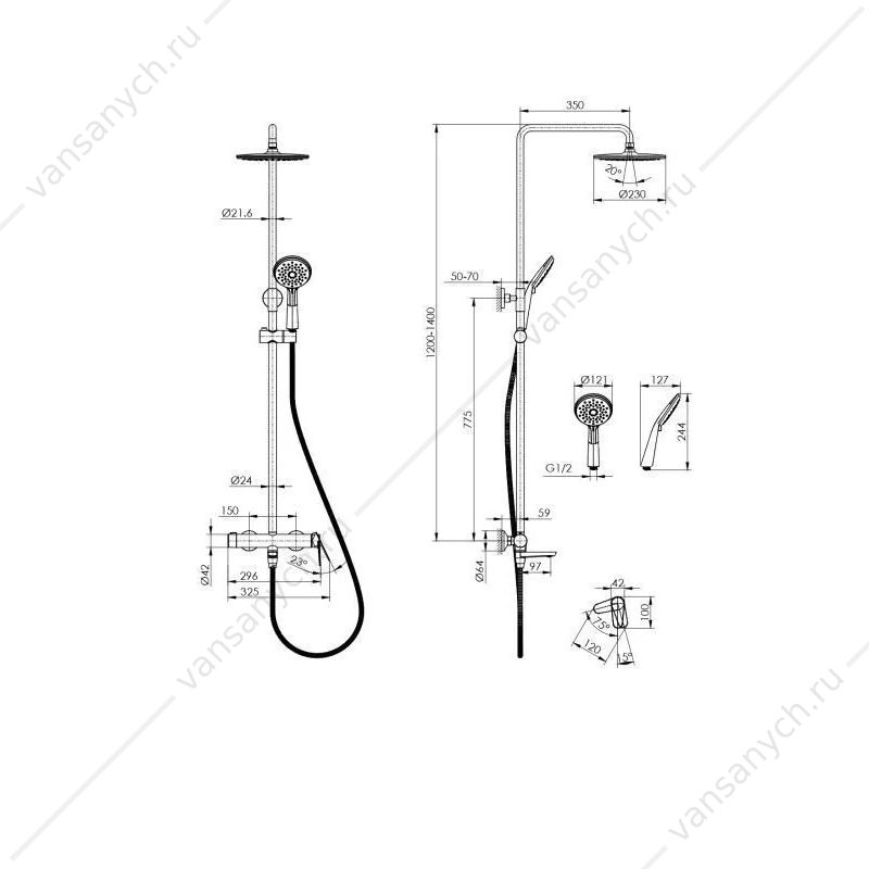 Душевую систему с передвижным держателем можно установить в любом месте.