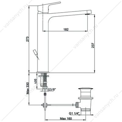 Смеситель для накладной раковины 237 TIERA с дон. клап, хром, 102188014EX