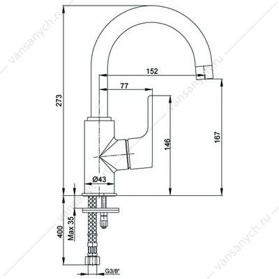 Смеситель для раковины 167 LUNA без дон. клапана 102108953EX