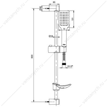 Душевой гарнитур 60см с мыльницей TIERA матовый черный 102146029C1EX E.C.A. (Турция) купить в Тюмени