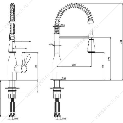 Смеситель для кухни с гибким изливом и душевой лейкой FLUX цвет сталь 406218019EX E.C.A. (Турция) купить в Тюмени (Ван Саныч™)