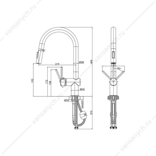 Гибкая подводка из нетоксичной EPDM резины в оплетке из нержавеющей стали, М10 - 1/2, длина 45 см