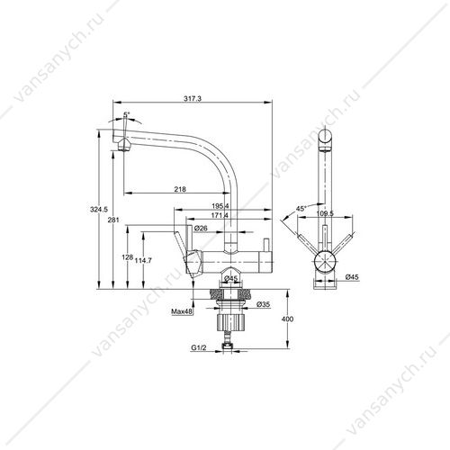 Расход воды: 8 л/мин (режим 1); 6,89 л/мин (фильтр)