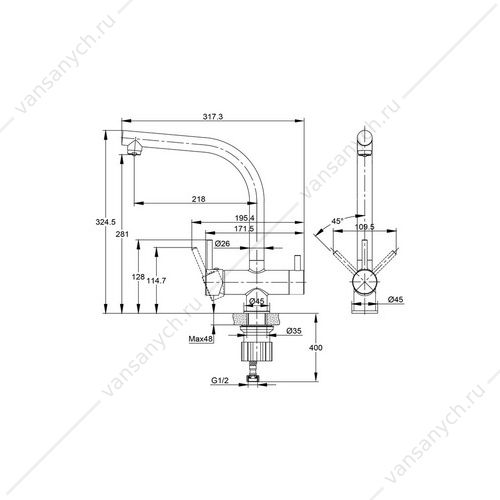 Высота излива: 281 мм