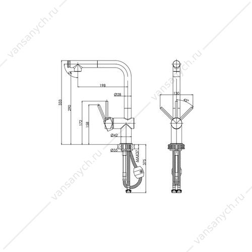 Гибкая подводка из нетоксичной EPDM резины в оплетке из нержавеющей стали, М10 - 1/2, длина 45 см