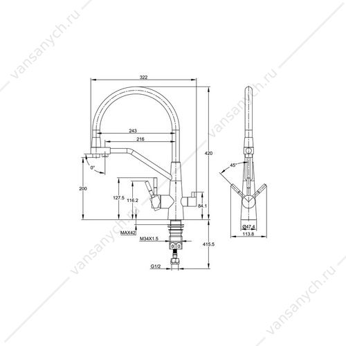 Расход воды: 9,56 л/мин (режим 1); 5,08 л/мин (фильтр)