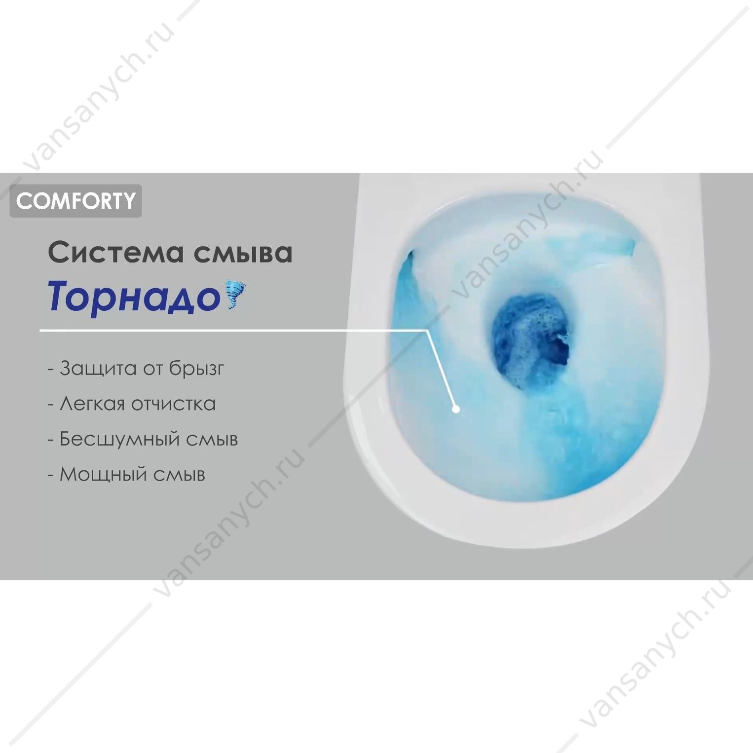 00-00014869 Унитаз безободковый смыв Торнадо с сиденьем микролифт COMFORTY CF3C789WH, белый, подвесной Comforty (Россия) купить в Тюмени