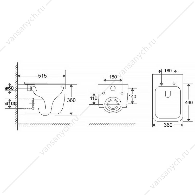 Тип унитаза: подвесной
