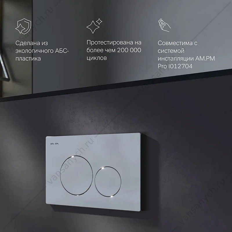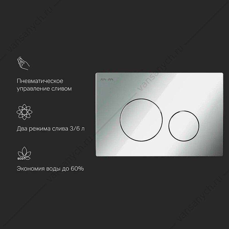 Кнопка смыва бренда AM.PM коллекции Pro L выполнена в стильном дизайне. Пневматическое управление смывом. Размер изделия (Ш/Г/В): 210x10x138 мм. Цвет: хром глянец. Форма кнопок: круглые. Материал: пластик.