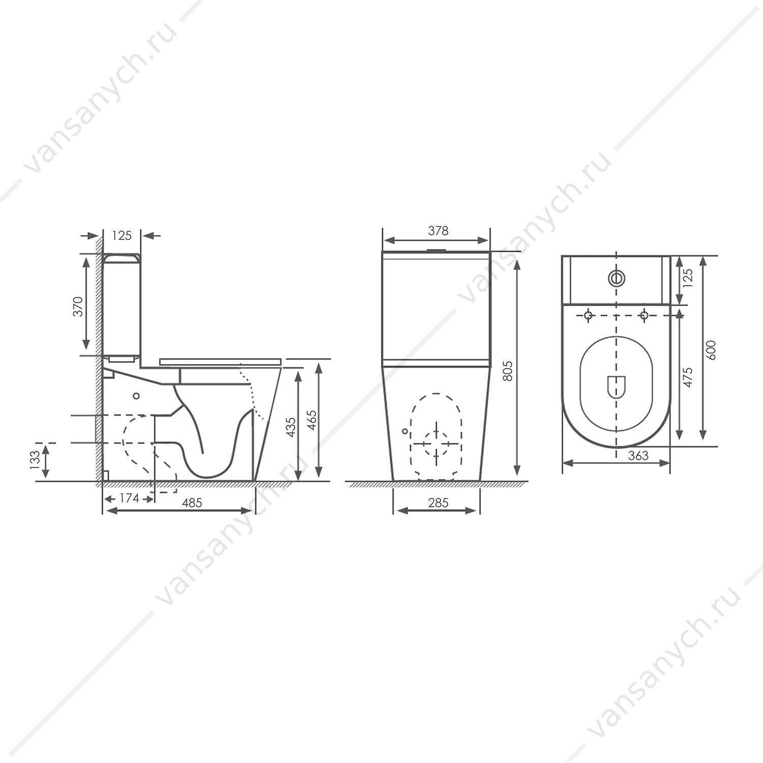 Чаша унитаза и бачок могу быть установлены вплотную к стене без зазора В бачке унитаза предусмотрены отверстия для крепления к стене Габаритные размеры ШхВхГ: 375*790*590 мм Вес: 49 кг. Материал: санфарфо