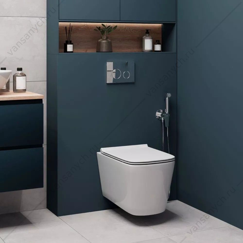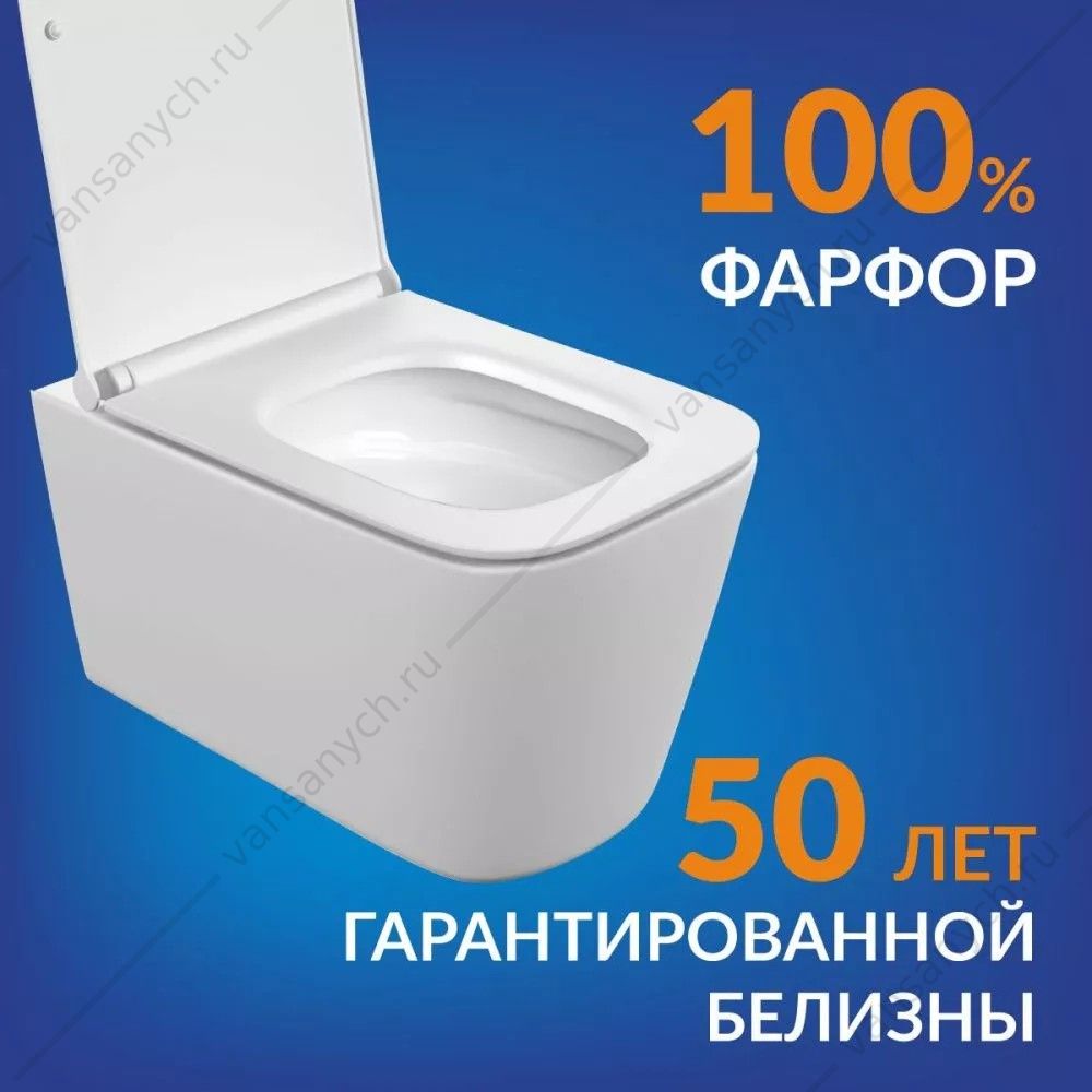 Безободковый унитаз Crea Vortex c антибактериальной легкосъемной крышкой-сиденьем SoftClose с функцией плавного закрывания.
